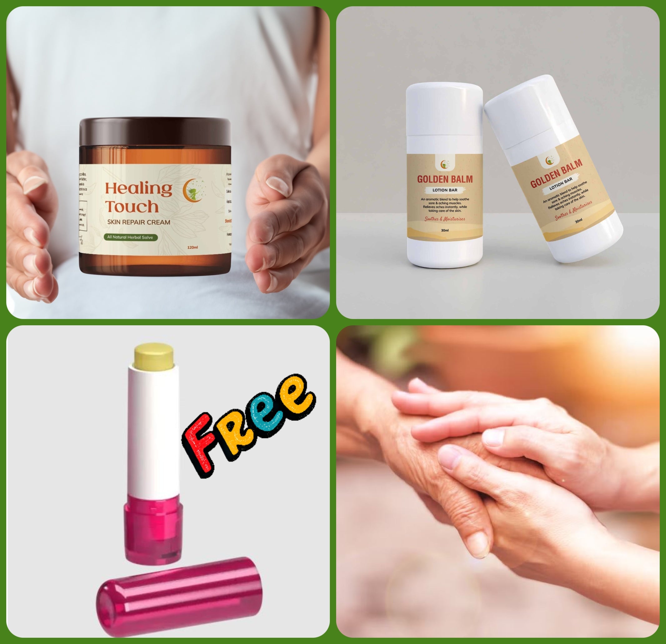 HEALING TOUCH SET - Healing Touch & Golden Balm - Small & Large with FREE Lip Balm
