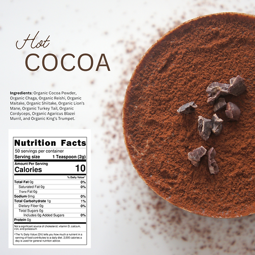 Organic Hot Cocoa Mushroom Blend - Smooth, Chocolatey & Nourishing - NO Sugar or Sweeteners