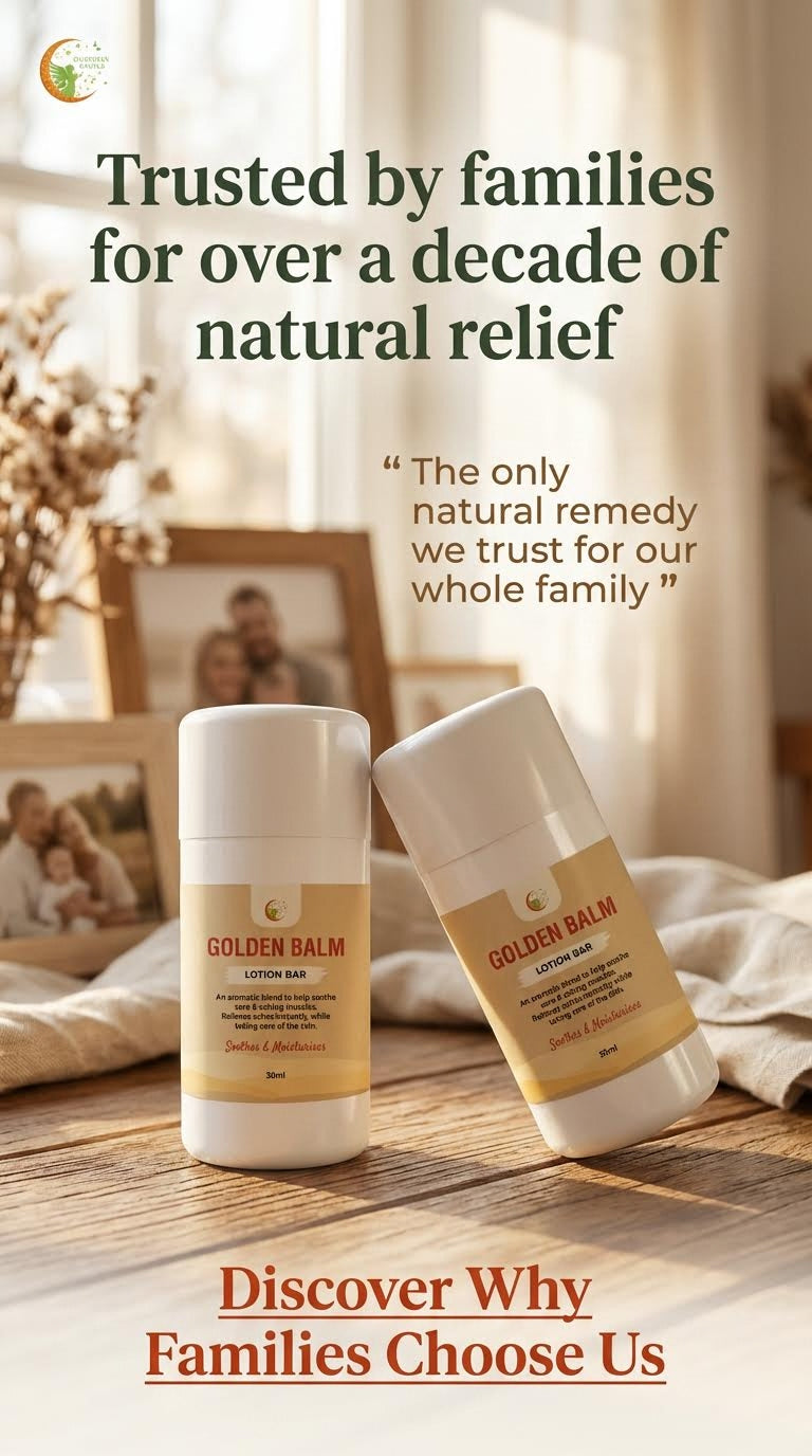 Golden Balm is Guardian Angels magical relief bar formulated to reduce pain and is an effective treatment in lowering the temperature of a fever.