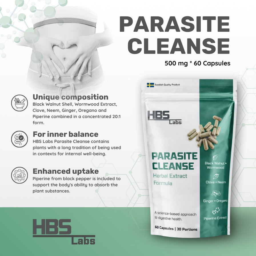 Parasite Cleanse from HBS Labs is a concentrated herbal extract formula created for adults who want a clear, time-limited cleanse protocol as part of their digestive health routine.